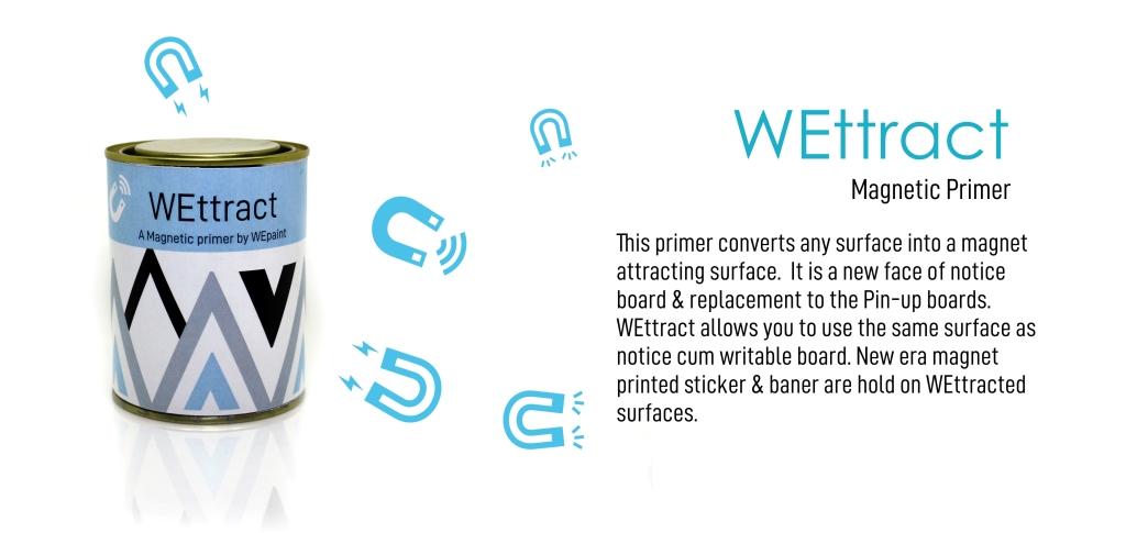 WEttract converts any surface into a magnet attracting surface. It is a new face of notice board & replacement to the Pin-Up Boards.